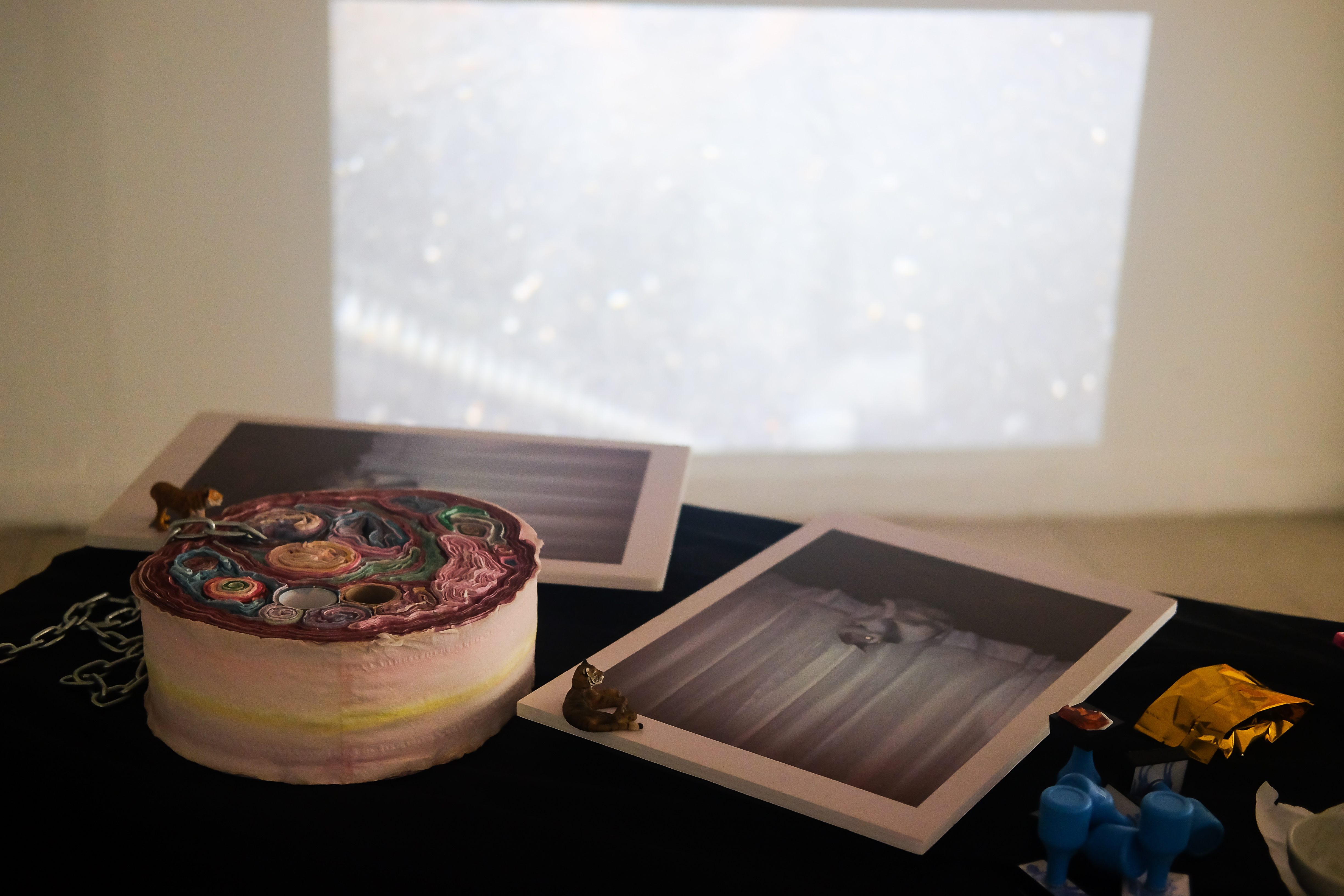 This artwork gives new life to old, unused artworks and objects from past shows by Liana, Robin & OH! Open House. Each object carries the weight of hours of thought, experimentation and discussion.